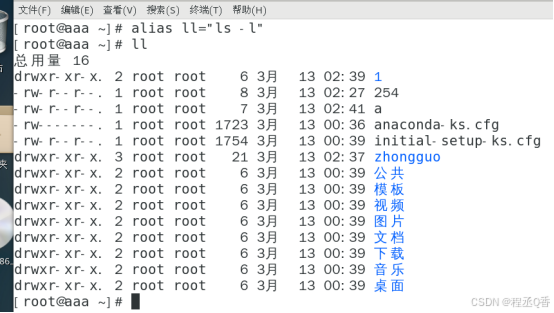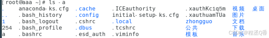 ls -a:显示所有文件和目录,包括隐藏起来的,文件名前带. 的是隐藏起来的。