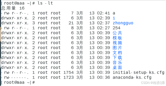 ls -lt(tl)表示详细信息视图,t表示时间排序,l表示列表模式 。