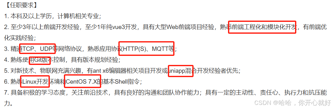 2.投递岗位中的任职要求,仔细看下,要会哪些技能,重点学习一下