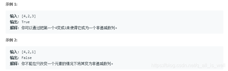 该题目属于leetcode中easy的题目。首先,题目中要求令数组变成非递减数列,即 array[i] <= array[i + 1]即可。我们可以通过设置一个计数器来判断数组中呈递减关系的元素个数。