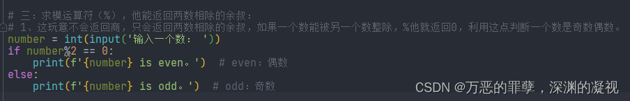 这玩意不会返回商,只会返回两数相除的余叔,如果一个数能被另一个数整除,%他就返回0,利用这点判断一个数是奇数偶数。