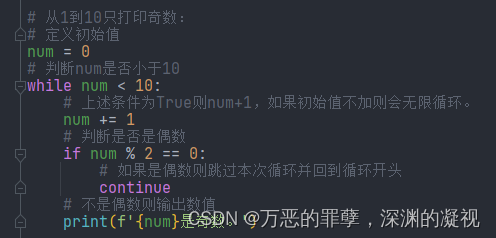 # 上述条件为True则num+1,如果初始值不加则会无限循环。