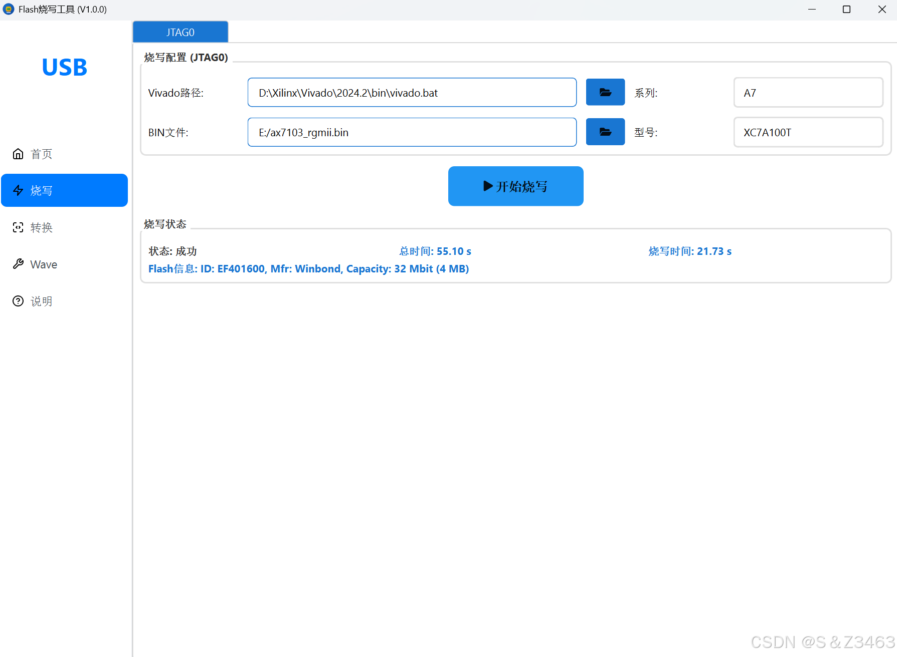 本软件为初步发布,仅支持部分A7和K7部分型号。支持各种厂家flash型号,包含非vivado列表型号