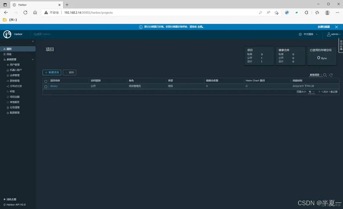 9、登录Harbor UI界面