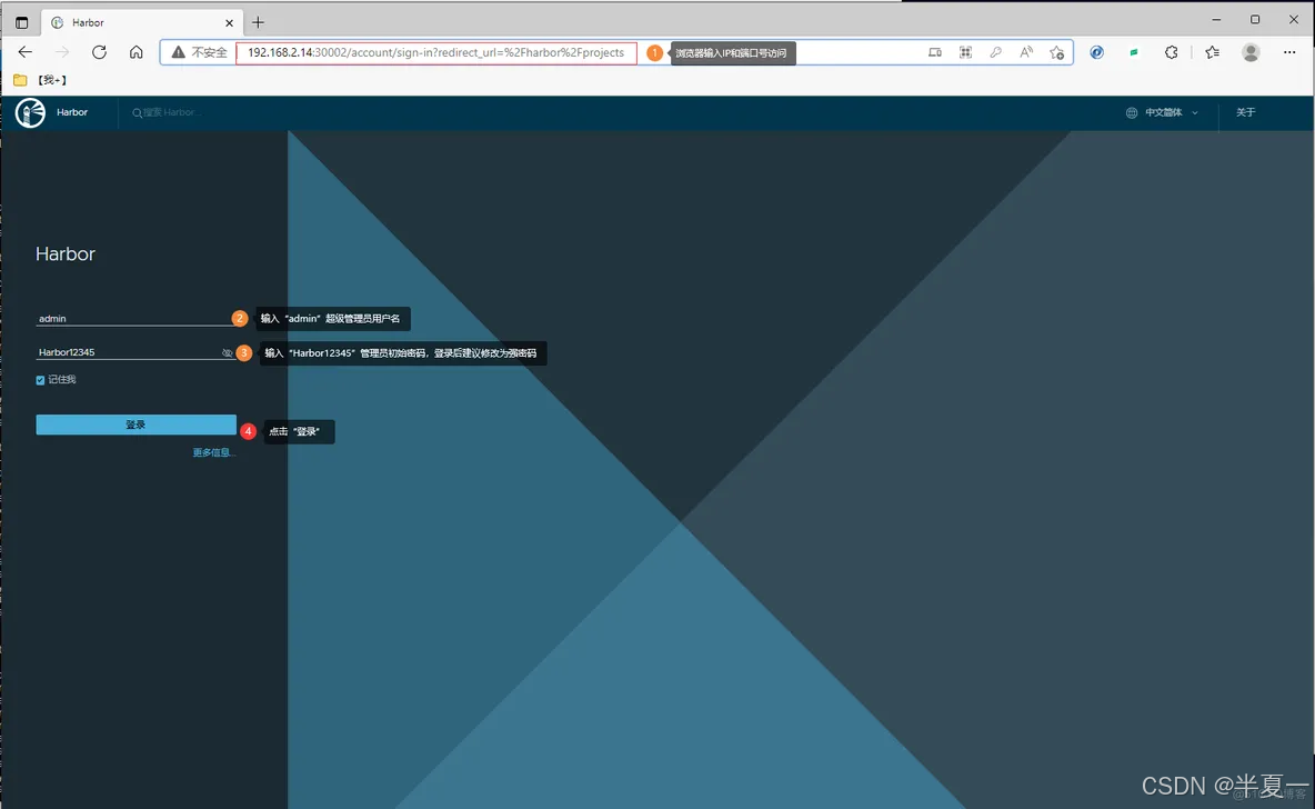 - 9、登录Harbor UI界面