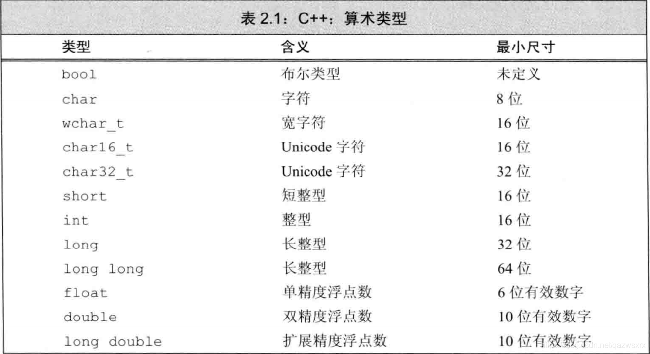对每种类型,C++规定了了标准尺寸的最小值,并允许编译器赋予更大的尺寸。