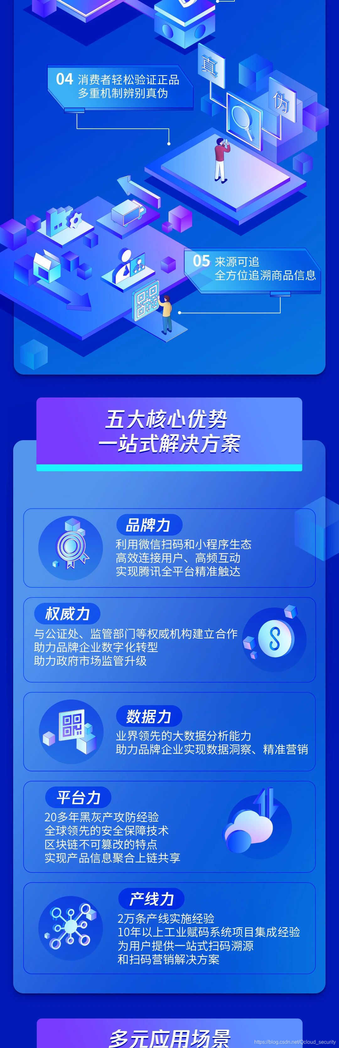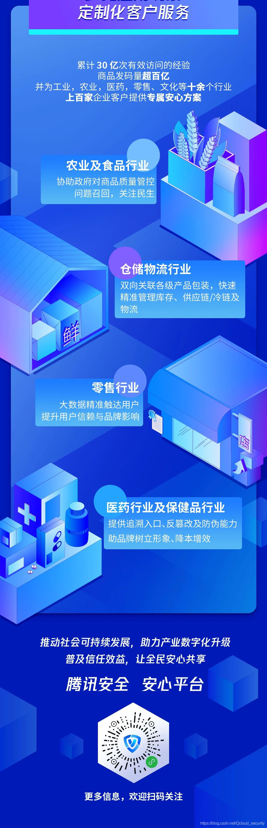 产业互联网时代,生产型企业在“互联网+”的助力下开始重新走上台前。然而伴随着数字化智能化的深入推进,相关问题也不断凸显。长期数字技术的滞后,质量安全认知、品牌意识的淡薄,使得企业在商品生产、加工、流通、营销等过程中缺乏有效的监管措施,假货窜货、供应链断裂、数据孤岛等问题相继冒出,成为阻碍企业向上发展的“拦路虎”,也成了扰乱市场正常秩序的“搅屎棍”。腾讯安全基于20年安全运营领域的实践与探索,于今天正式发布“安心平台”,通过整合产品溯源、区块链、品牌保护和营销风控能力与技术,助力企业实现商品生产、流通、营销的全链路一站式数字化管理。作为一款数字化管理平台,腾讯安心平台具备全流程追溯、数据不可篡改和简单易用好操作的技术优势,可适用于农业、物流、医药、能源等多种行业。