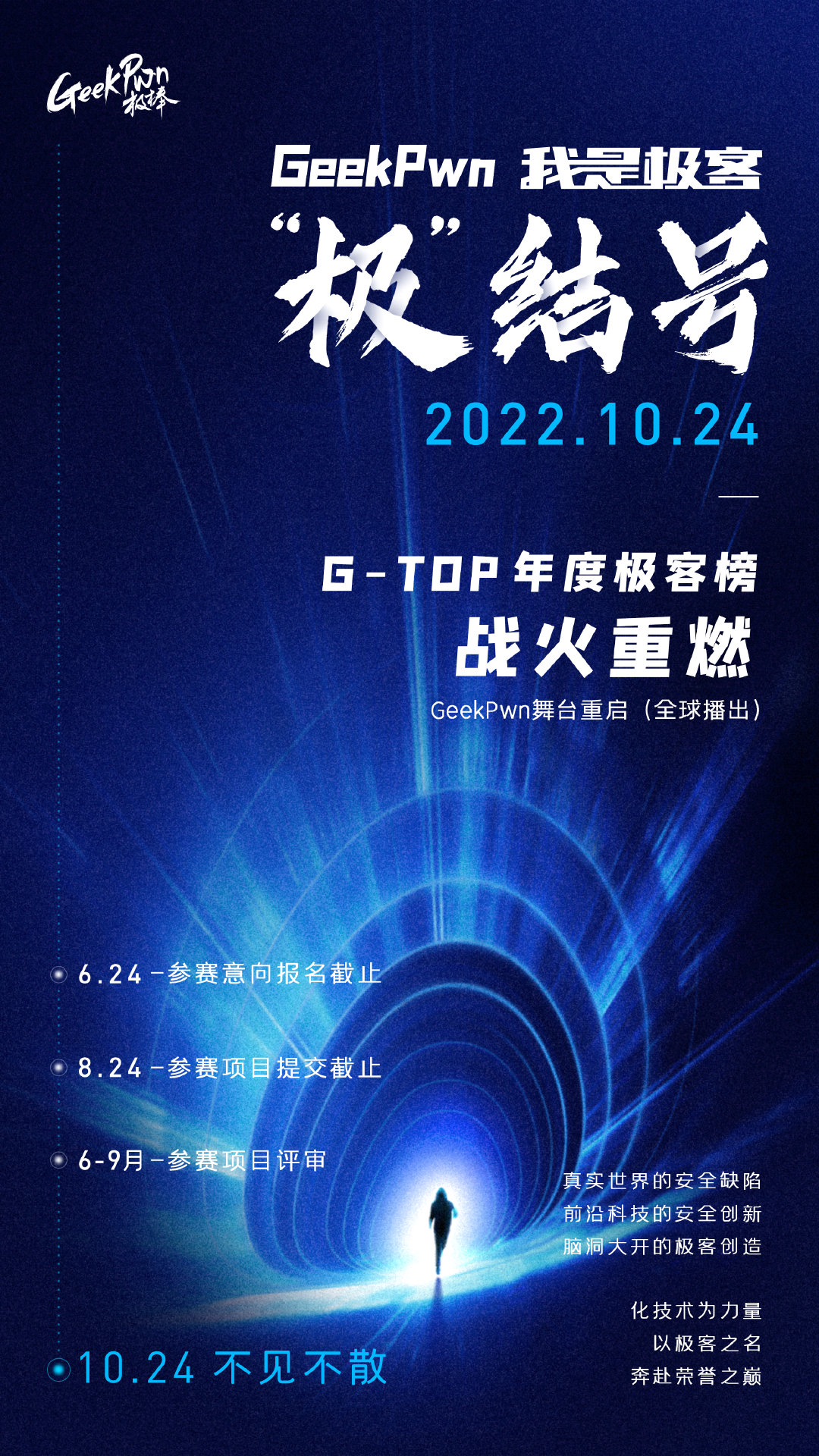 安全研究没有限制和规则,缺的是技术和创意,还有一往无前、别出心裁的勇气和智慧。舞台已搭好,最强极客荣耀之战一触即发,你敢来吗?