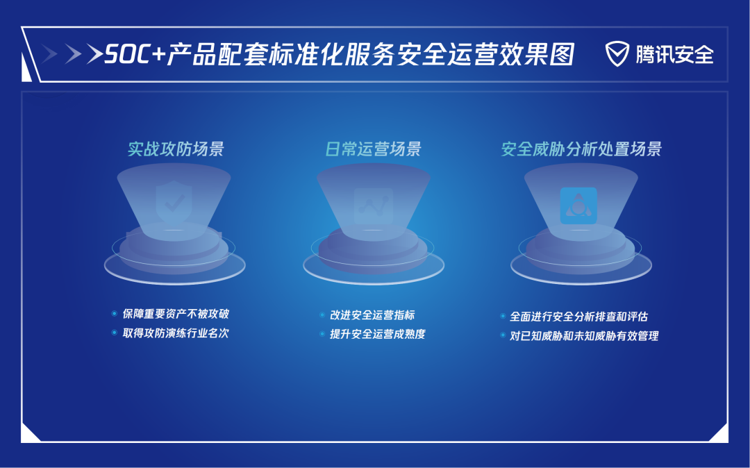 而腾讯安全推出的“SOC+安全运营体系”新理念,强调以威胁情报运营和攻防对抗为基础,驱动客户安全运营整体能力朝“实战化”、“体系化”、“平台化”不断升级和演进。