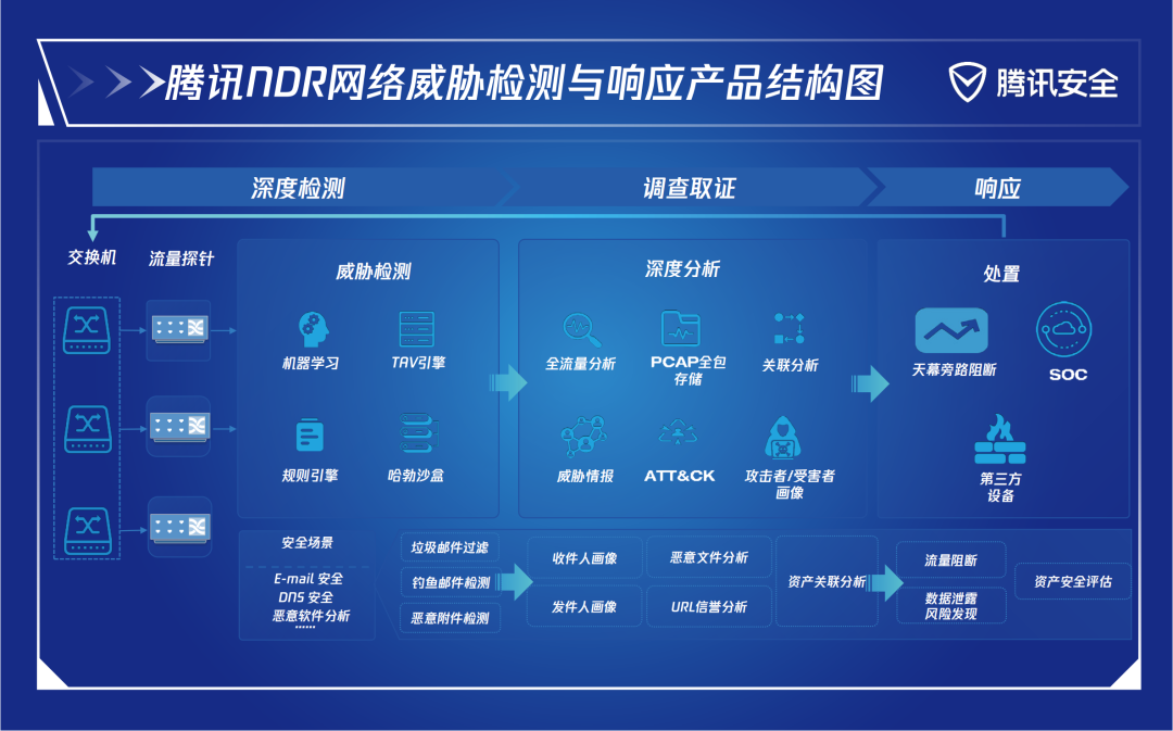 (腾讯NDR网络威胁检测与响应产品结构图)