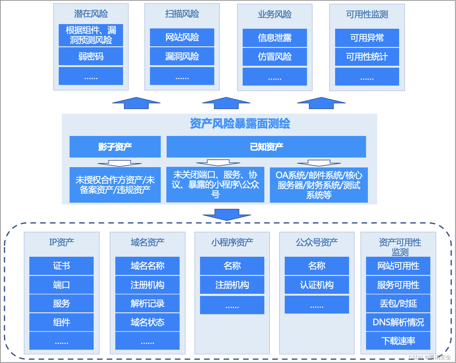 以云端能力为核心,提供资产暴露面监测、资产风险情况梳理以及核心网站资产的可用性感知,实时提供全面资产体检服务。