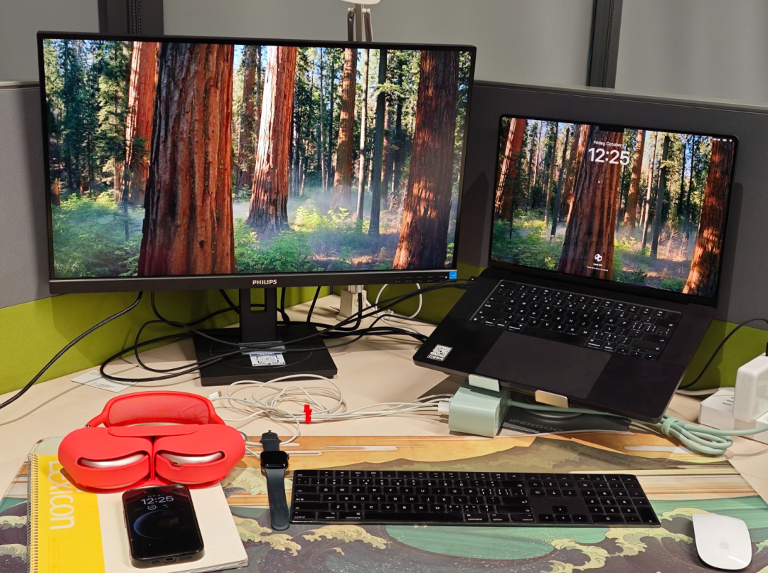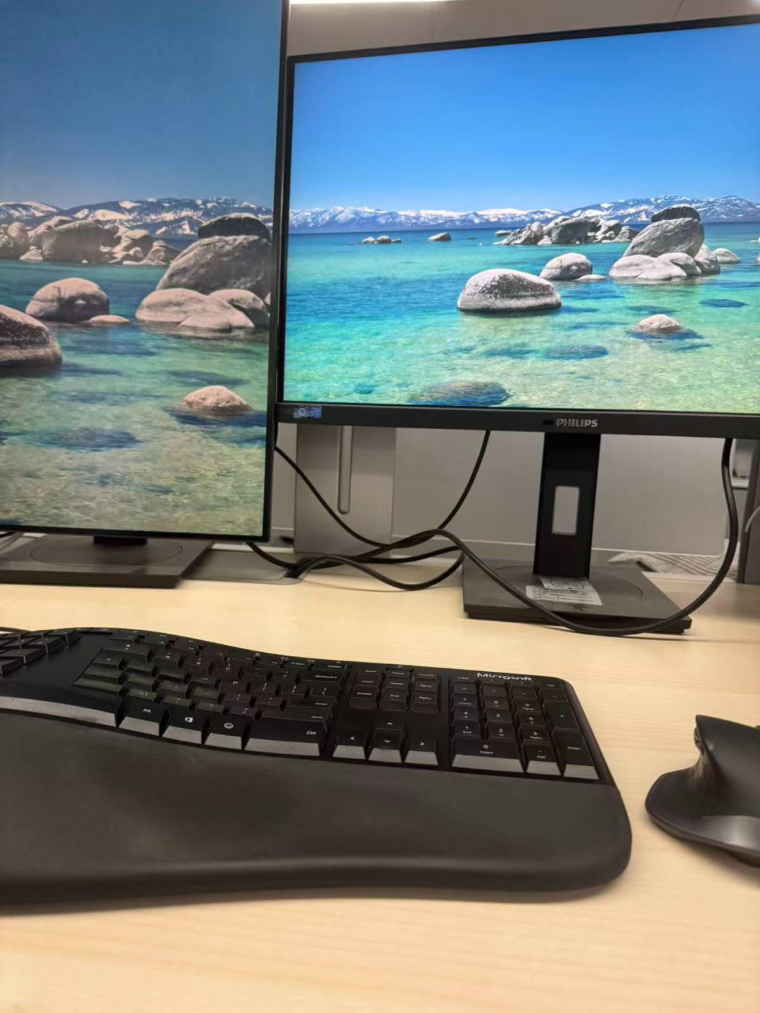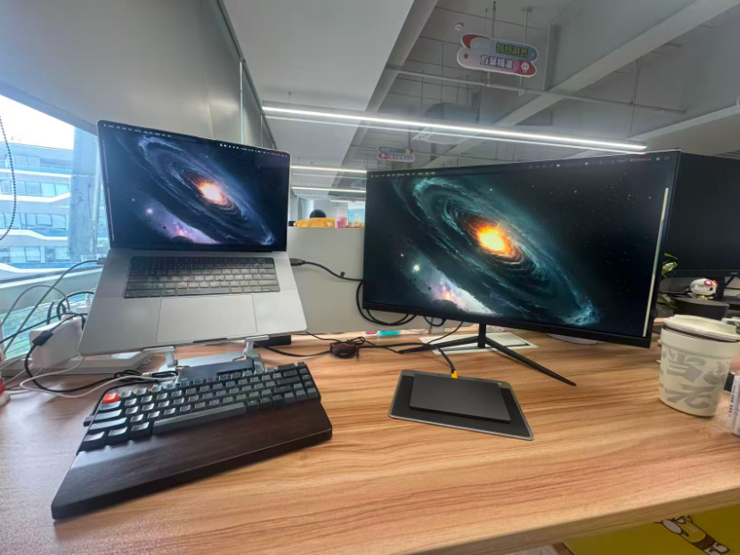 一个超宽的带鱼屏:我习惯将它左右分屏,当成三个独立的显示器来用。这对于我平时需要同时处理客户沟通、架构设计、代码验证等多线程工作来说,效率极高。