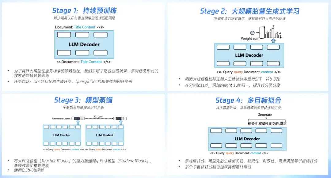 1. Continued Pre-training(搜索持续预训练):采用多种任务形式的搜索语料持续训练,优化大模型的领域适配效果;