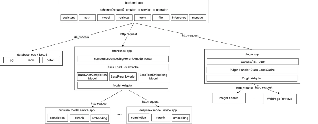 具体,我们围绕backend app、infenrence app、plugin app 三个核心的微服务,来一起梳理下其核心流程: