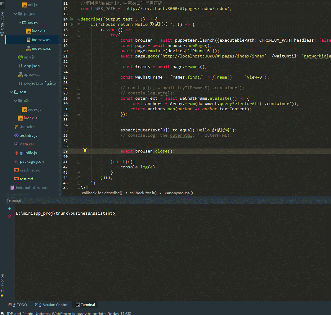 这样我们就能拿到小程序的内容,便于我们后续的单元测试,接下来我们可以加入”抹茶”来测试输出是否符合预期,先上代码