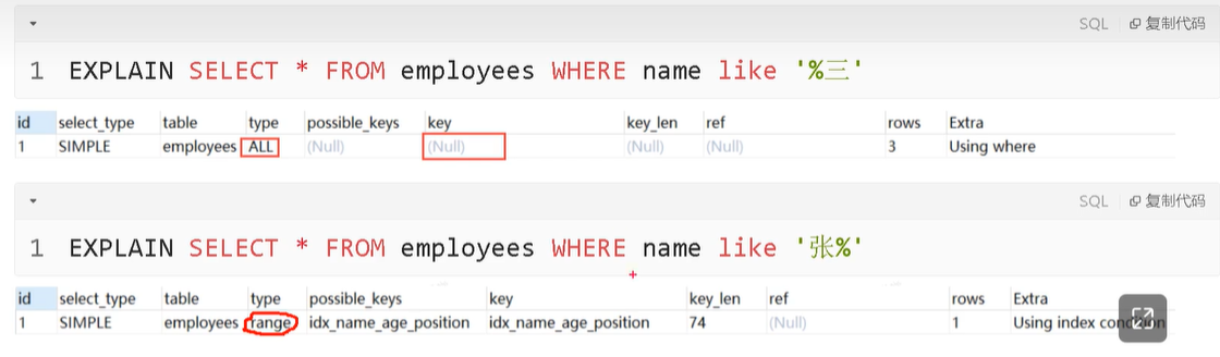 范围查询后,全失效