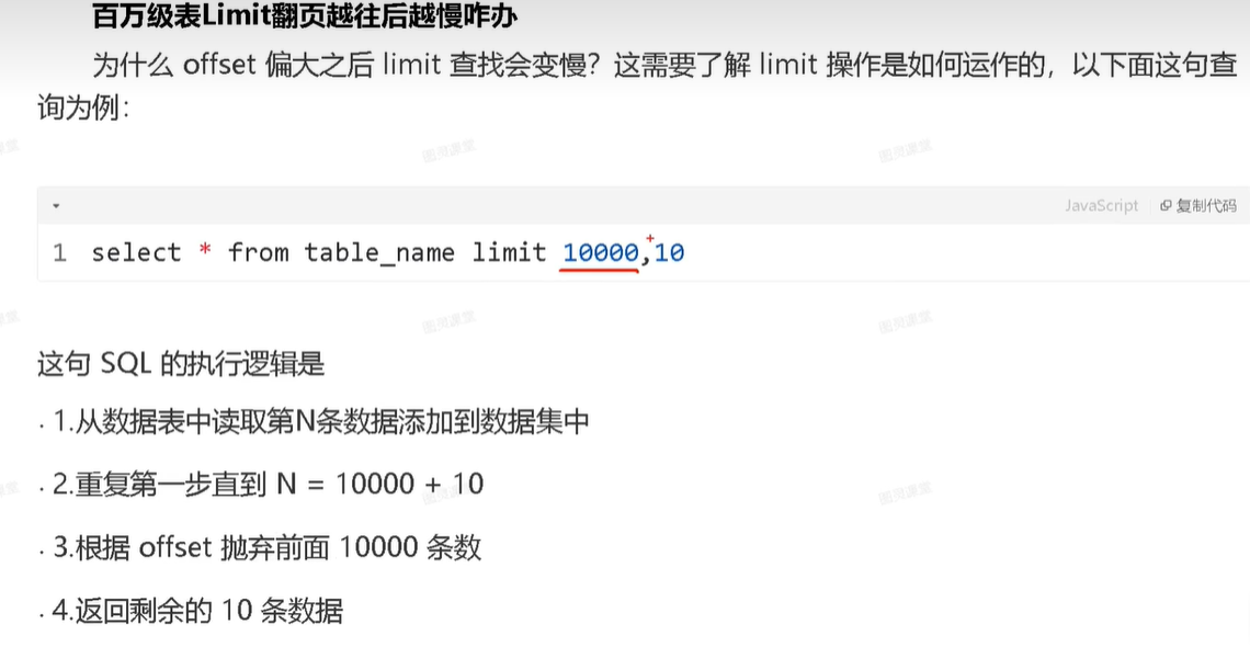 限制返回数据条数 分页页数大也会变慢