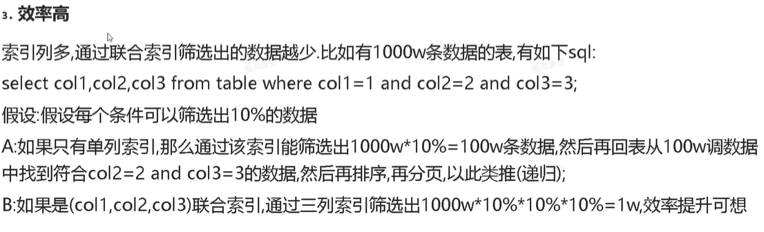 复合索引:多个字段,排序按照,字段顺序,先排序A,再B,C