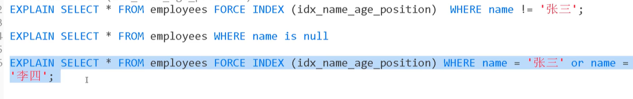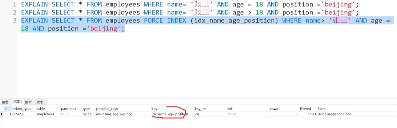 force index(索引名称) 强制使用索引