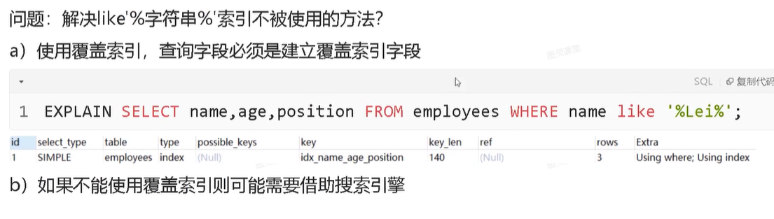 尽量使用覆盖索引(只访问索引的查询(索引列包含查询列)),减少 select*语句