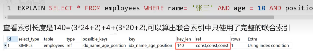 全值匹配,查询条件包含索引的所有列