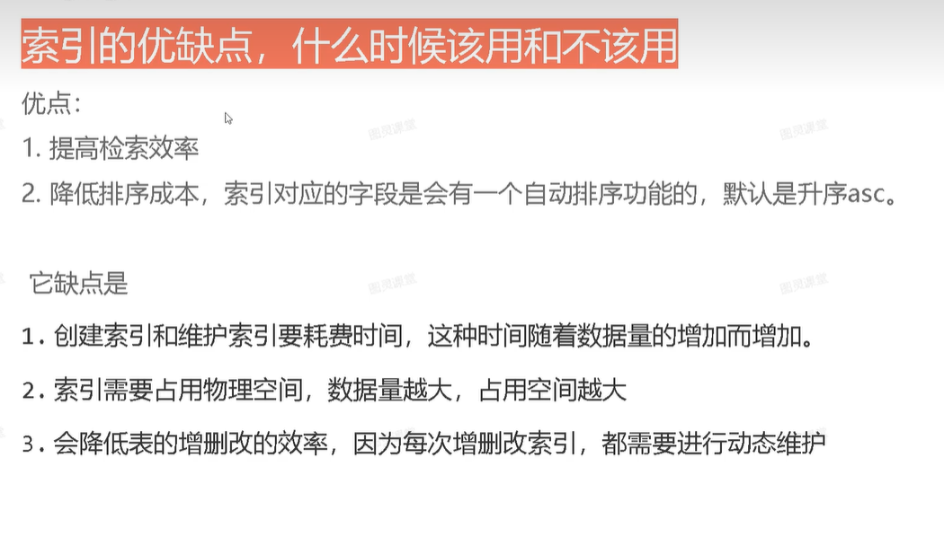 索引的优缺点,什么时候该用和不该用