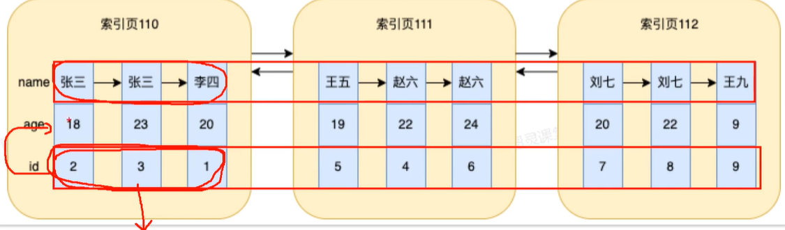 因为排序是顺序排的,name有序,但是不表示age会有序,