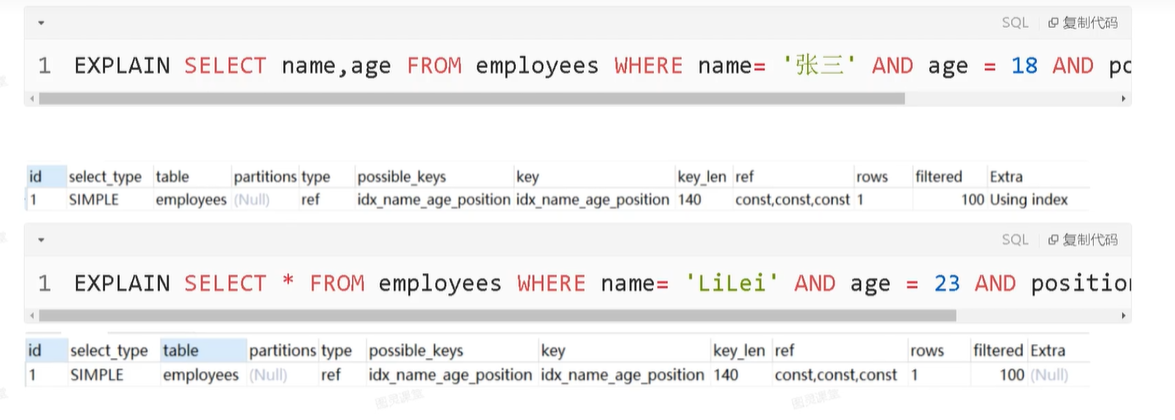 select * from employees where age = 18 and name = '张三';
