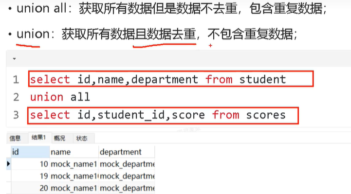用union all 代替union