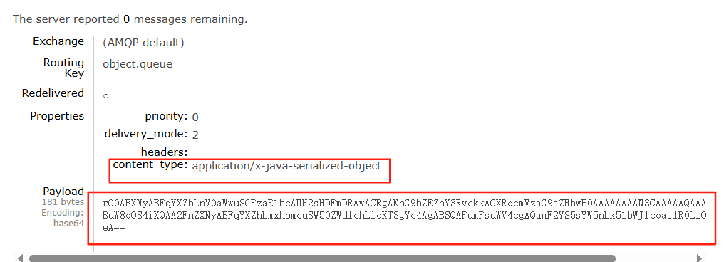 获得消息,这是序列化以后的结果,默认的用jdk的ObjectOutputStream完成序列化,有安全风险,消息变得很大,传输不方便,可读性差,不推荐