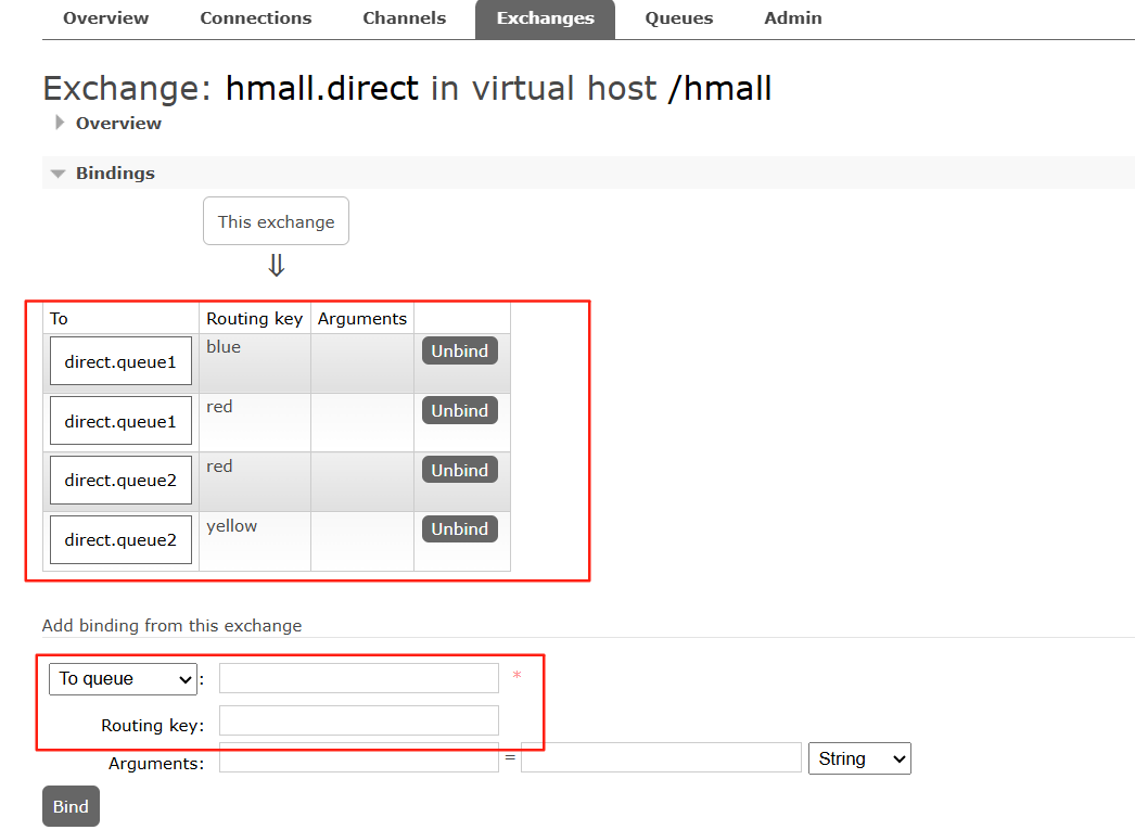 public Binding directQueueBindingRed(Queue directQueue1, DirectExchange directExchange){