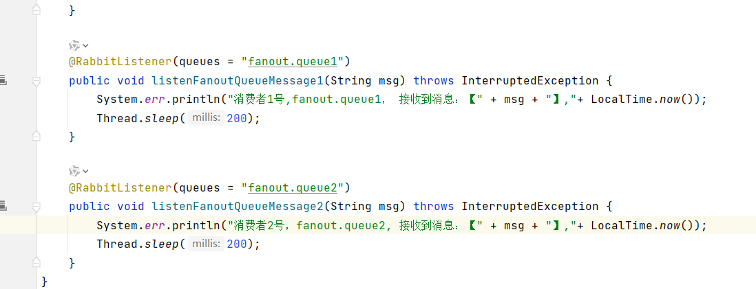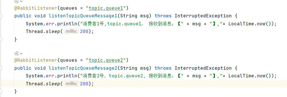 public void listenWorkQueueMessage2(String msg) throws InterruptedException {