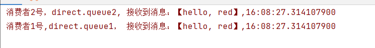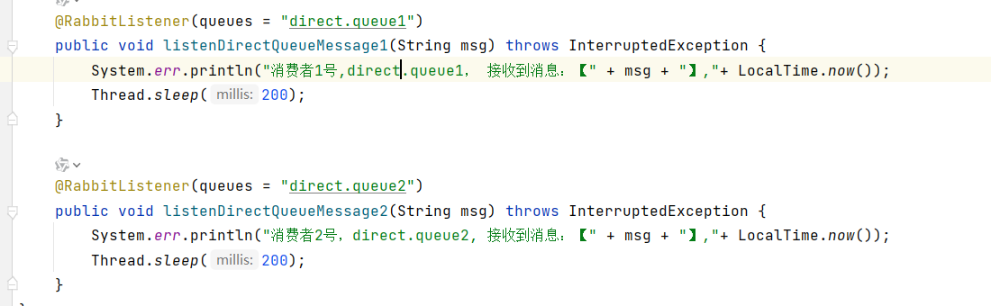System.err.println("消费者2号,direct.queue2, 接收到消息:【" + msg + "】,"+ LocalTime.now());