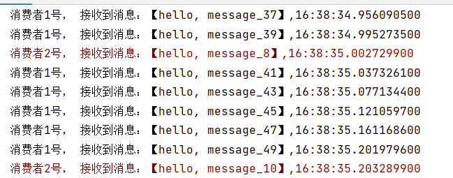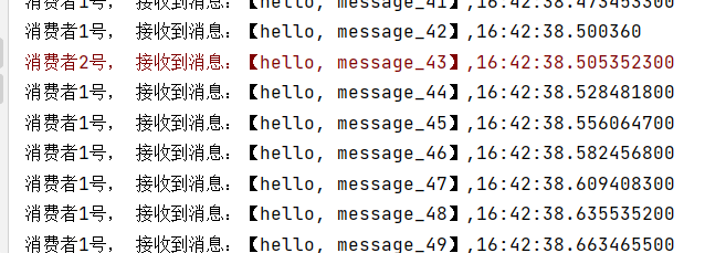 System.err.println("消费者2号, 接收到消息:【" + msg + "】,"+ LocalTime.now());