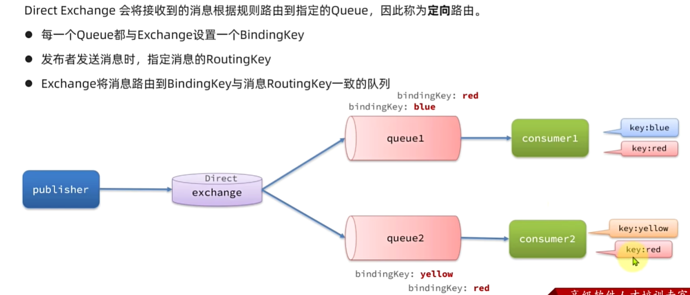return BindingBuilder.bind(directQueue1).to(directExchange).with("red");