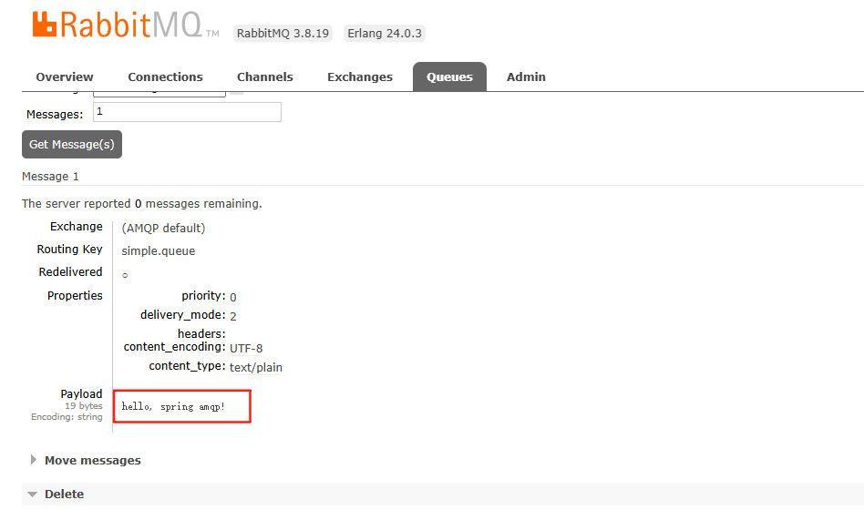 @RabbitListener(queues = "simple.queue") 通过注解配置要监听的队列名称,将来SpringAMQP会把消息传递到当前方法