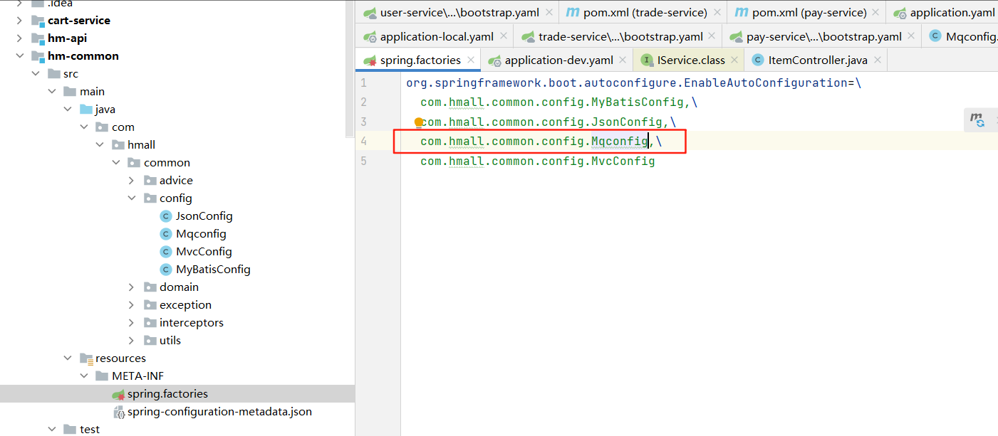 在common服务里注册得,怎么被pay,trade服务扫描到,利用springboot的自动装配