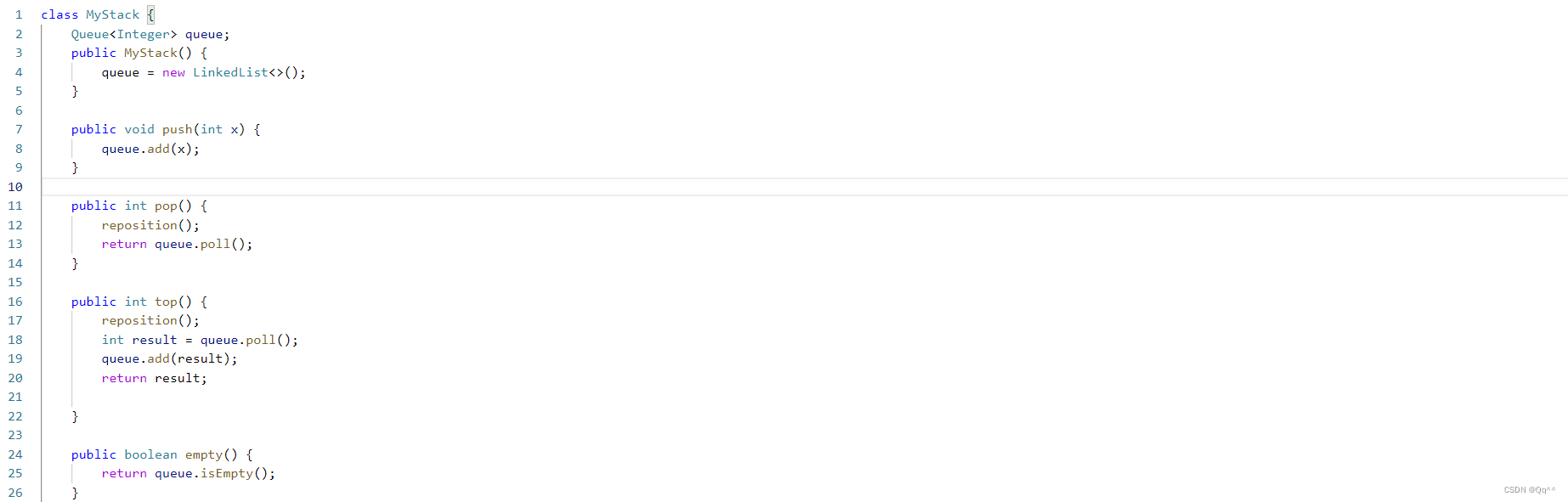 文章链接:代码随想录https://leetcode.cn/problems/implement-stack-using-queues/description/代码随想录