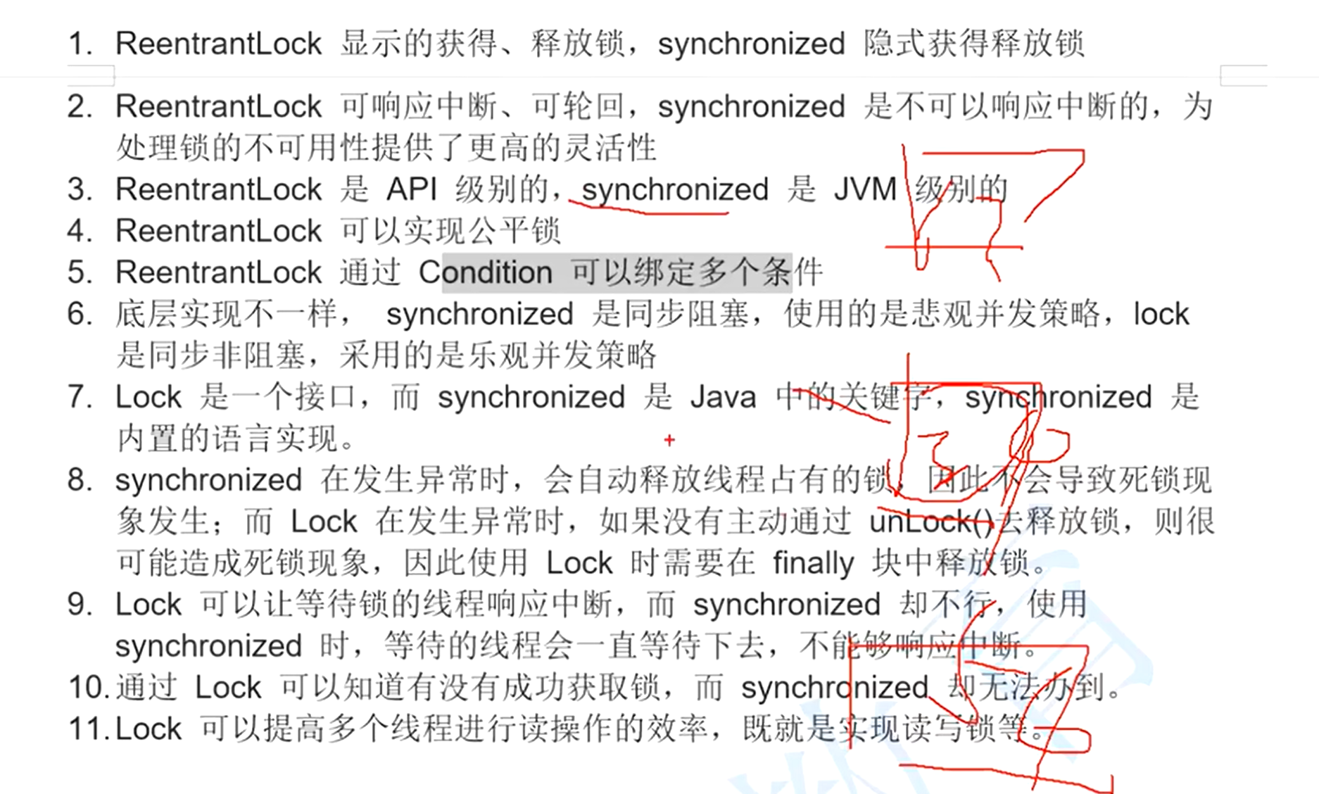 相比synchronized,ReentrantLock增加了一些高级功能。主要来说主要有三点:①等待可中断;②可实现公平锁;③可实现选择性通知(锁可以绑定多个条件)