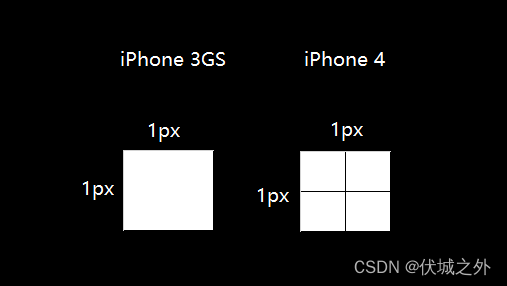 - iPhone 3GS的DPR=1,即 1px = 1 物理像素,在1px * 1px区域内,只有1个物理像素点,即可占据屏幕 s 大小区域