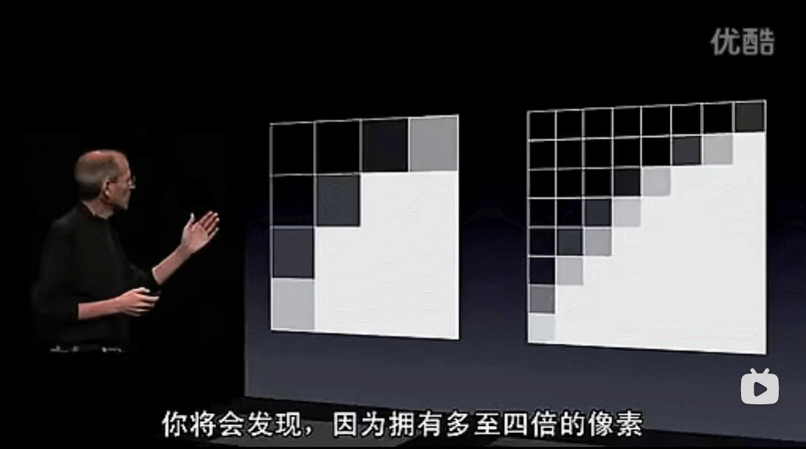 PPI越高,说明屏幕的每英寸上的物理像素点越多,那么这又有什么用呢?我们可以从下面这个视频的06:00开始看
