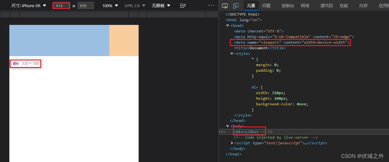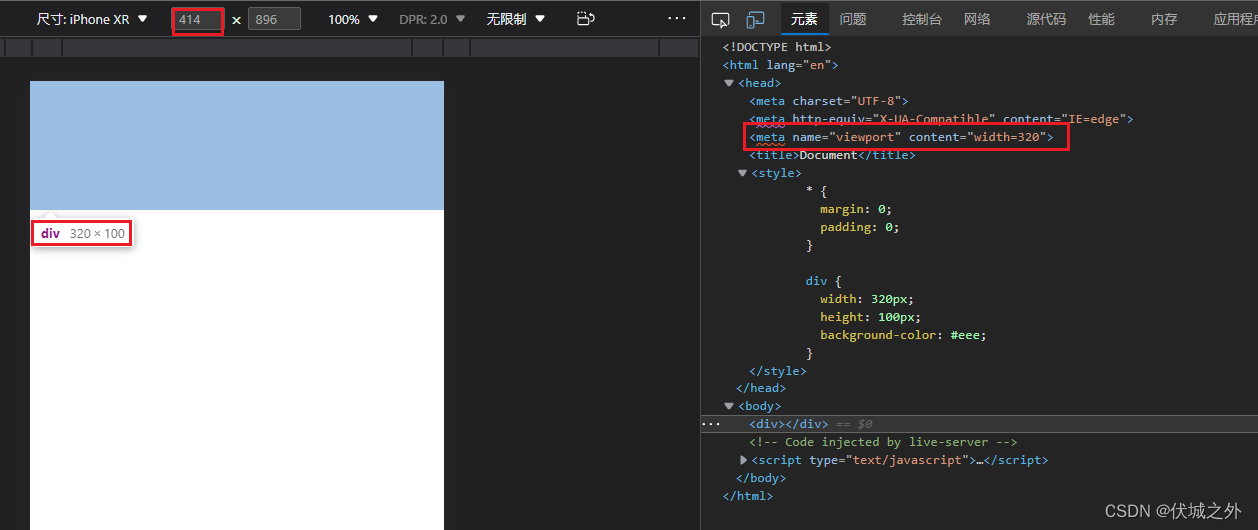 虽然上面meta viewport只设置了width,但是实际上等价于