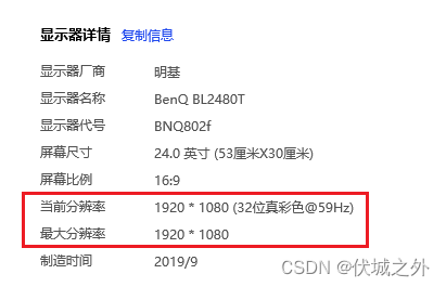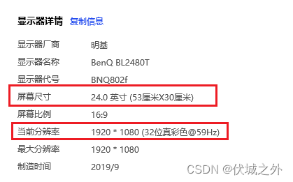 比如,对于物理分辨率为1920x1080的显示器,我们既可以选择24英寸,也可以选择27英寸。