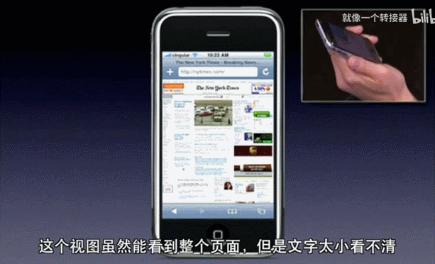 当乔布斯决定为iPhone 2G定制一款专属的移动端浏览器Safari时,它面临一个棘手的问题,那就是如何在手机这种小尺寸低分辨率的屏幕上,优雅地显示专门为PC端大尺寸、高分辨率屏幕设计的网页呢?
