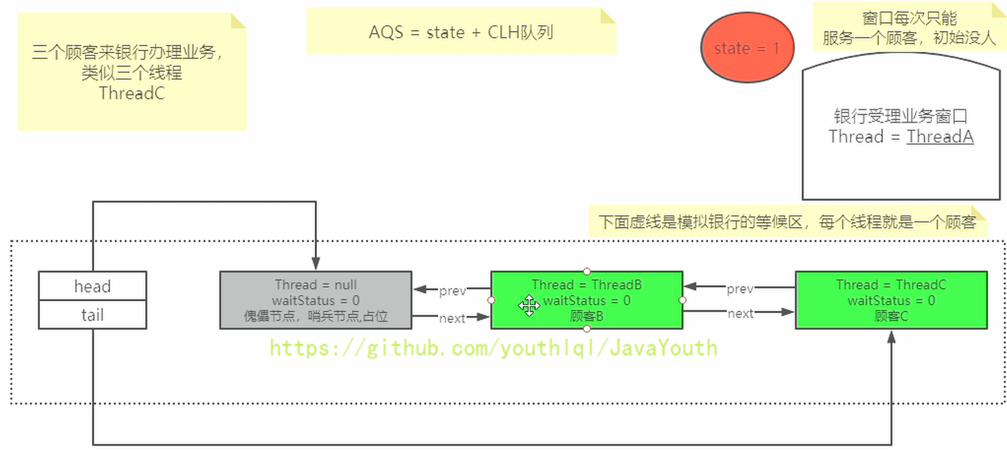 3、AQS采用的是将head指向B节点成为新的哨兵节点,旧的哨兵节点因为没有任何引用指向了,慢慢就会被GC掉。