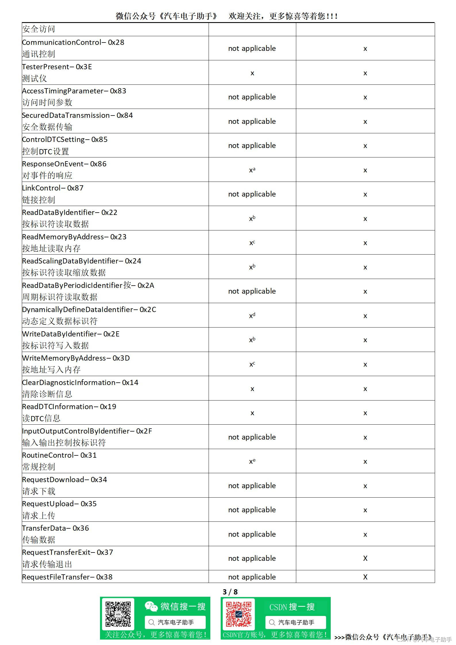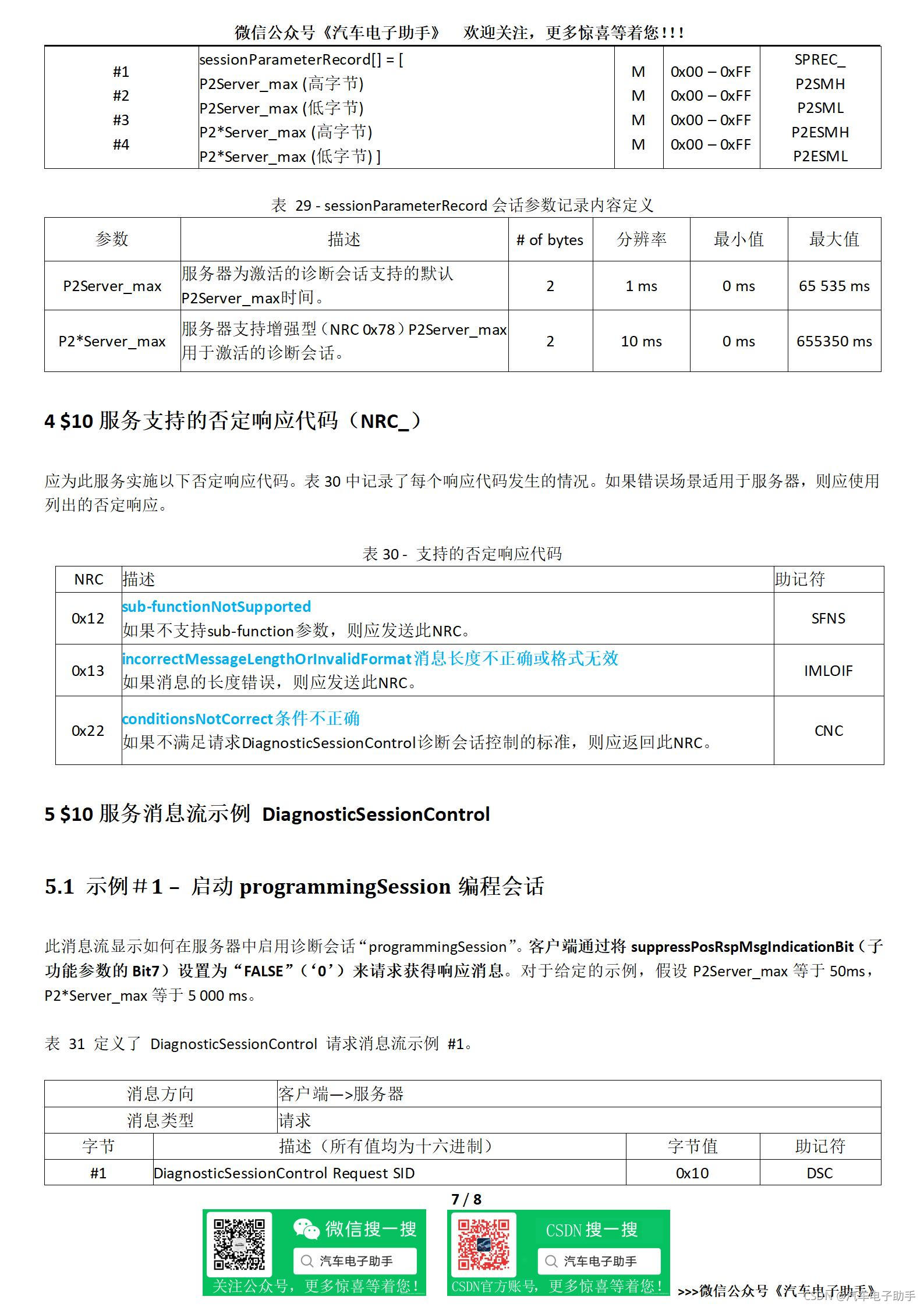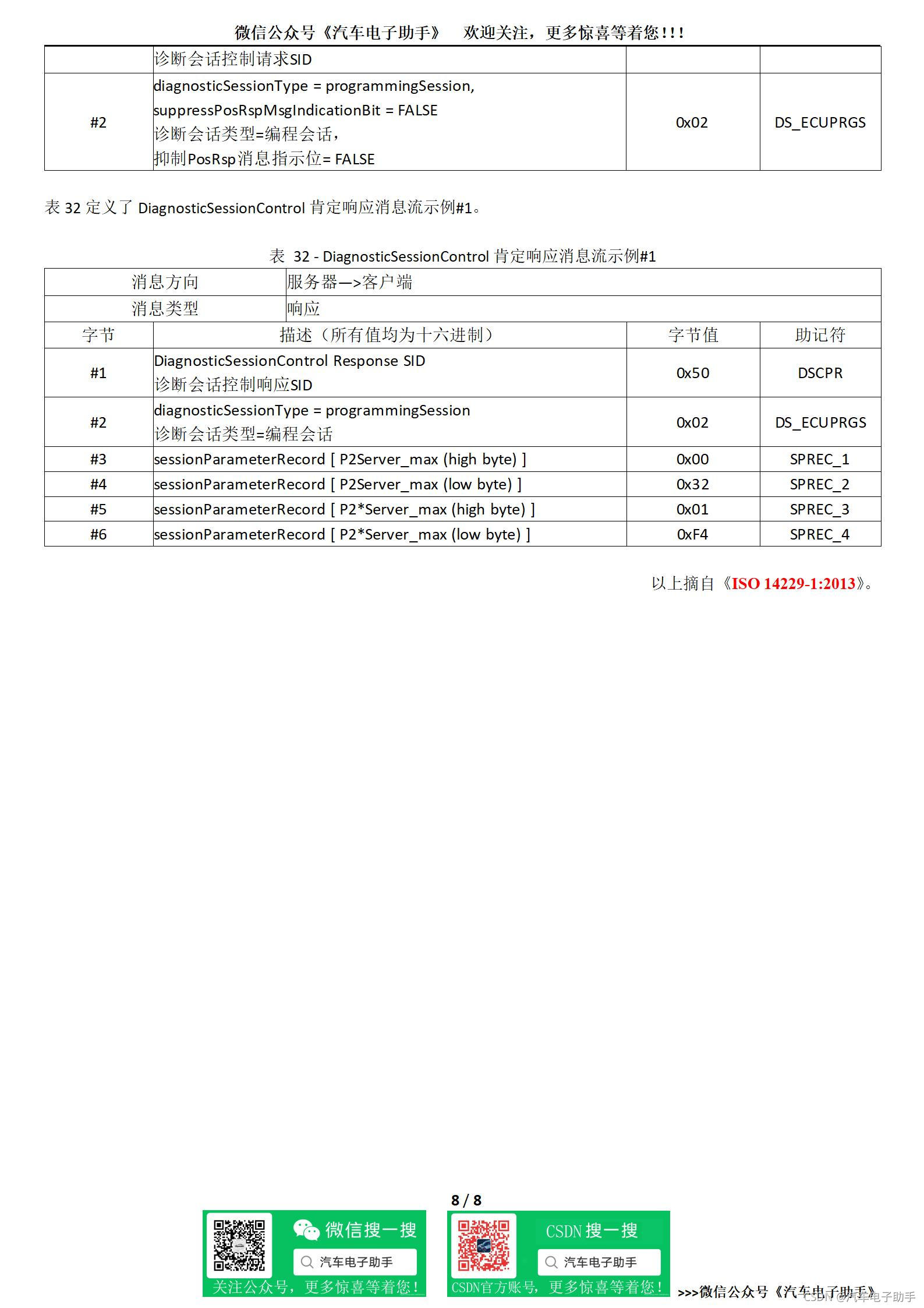 | DiagnosticSessionControl 诊断会话控制 | 0x10 | 客户端请求控制与服务器的诊断会话。 |