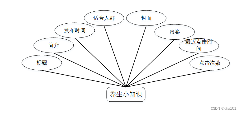 养生小知识实体包括标题,简介,发布时间,适合人群,封面,内容,最近点击时间,点击次数等属性。养生小知识实体图如图4-4所示: