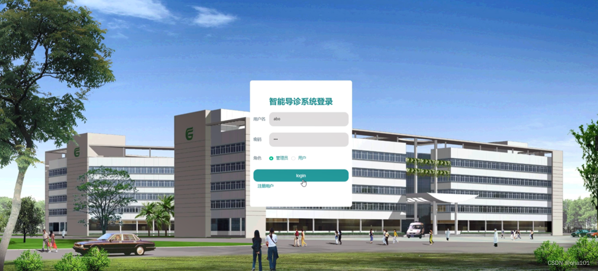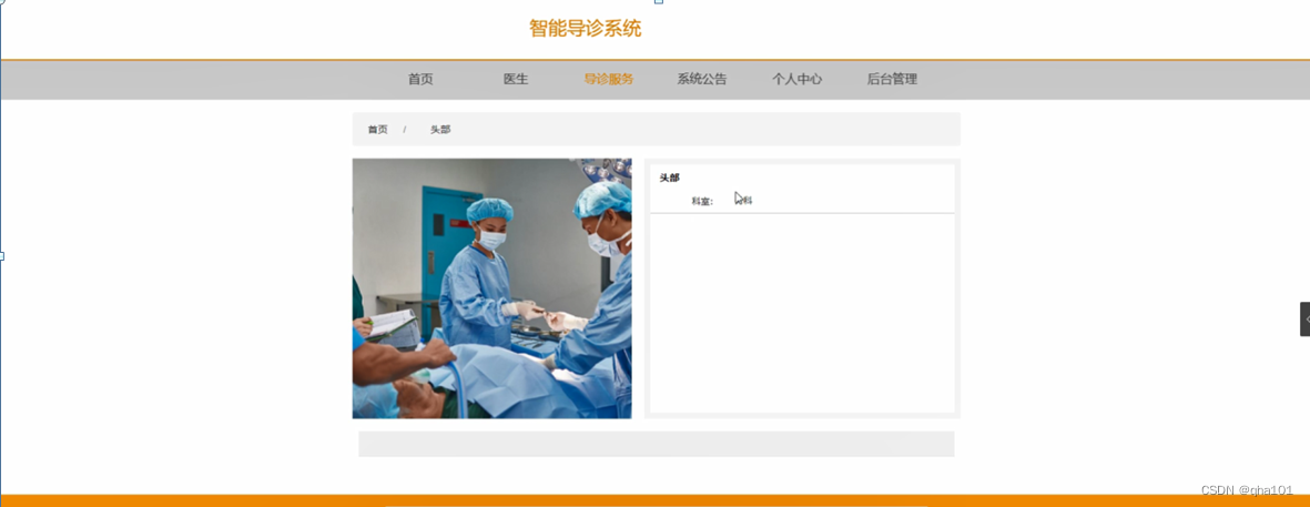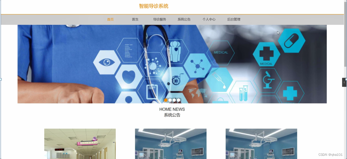 智能导诊系统,在系统的首页可以查看首页、医生、导诊服务、系统公告、个人中心、后台管理等信息进行详细操作,如图5-1所示。