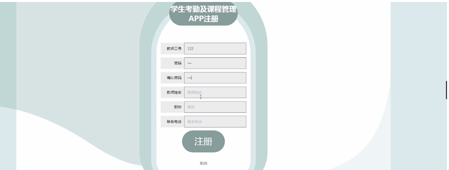 教师通过输入教师工号、密码、教师姓名、职称、联系电话等内容进行注册,如图4-8所示。