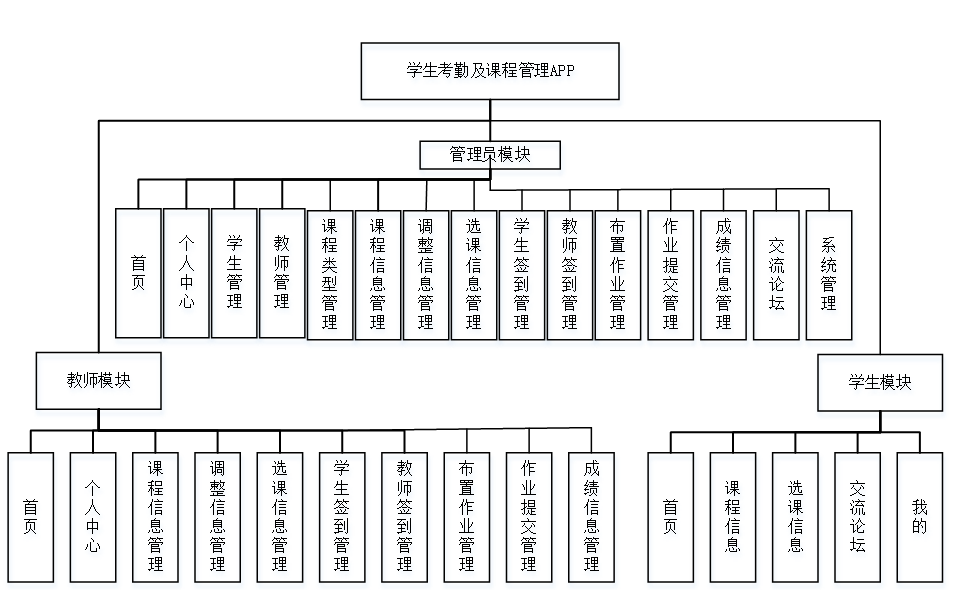 根据学生考勤及课程管理APP的功能需求,进行系统设计。